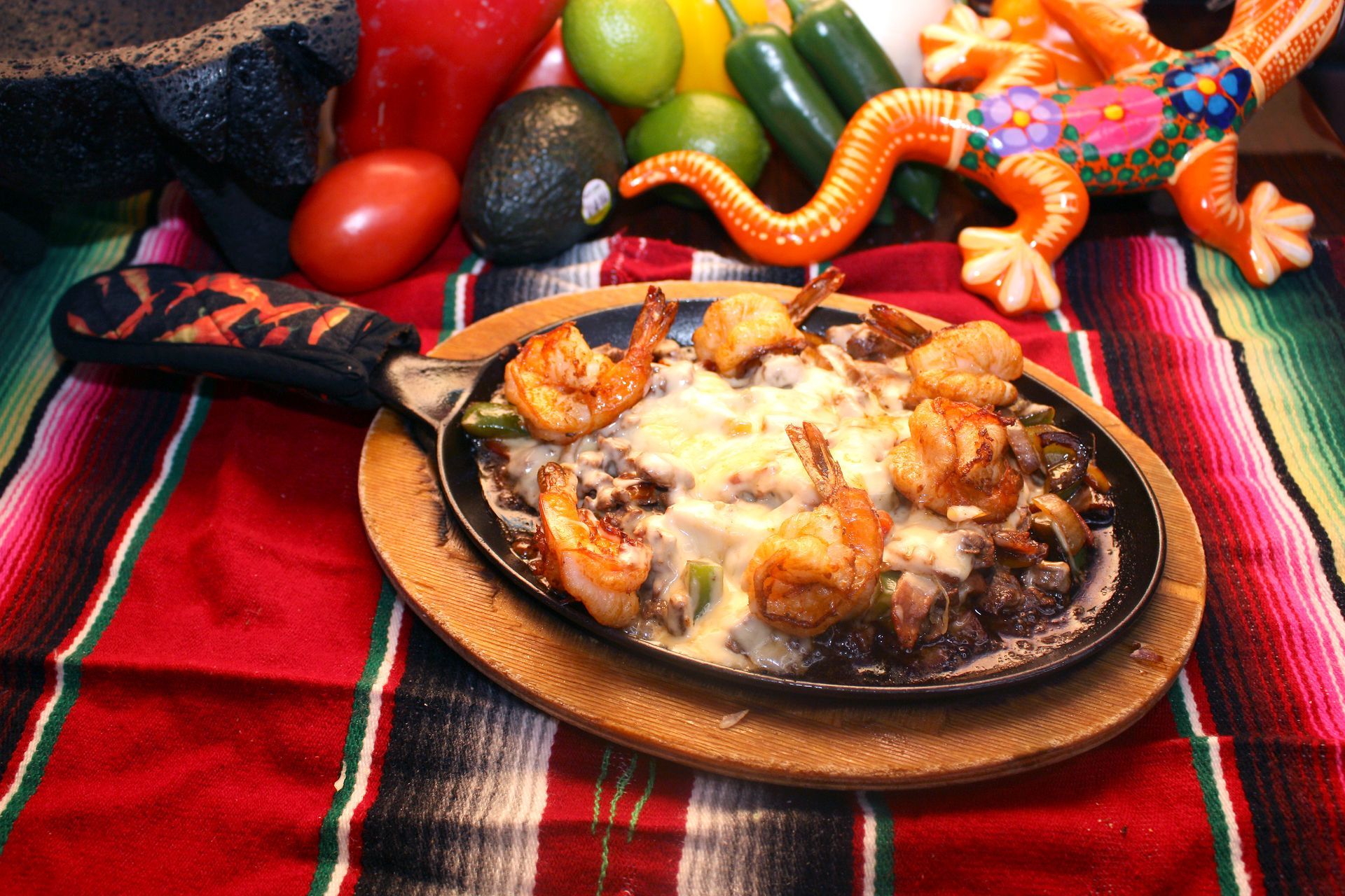 Grilled and chopped bell peppers and onions, jalapeños, chorizo, shrimp, bacon, steak and melted Chihuahua cheese.